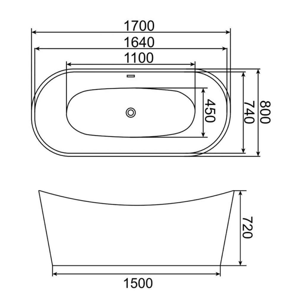 بانيو فري ستاند ابيض بيضاوي 170*80 سم